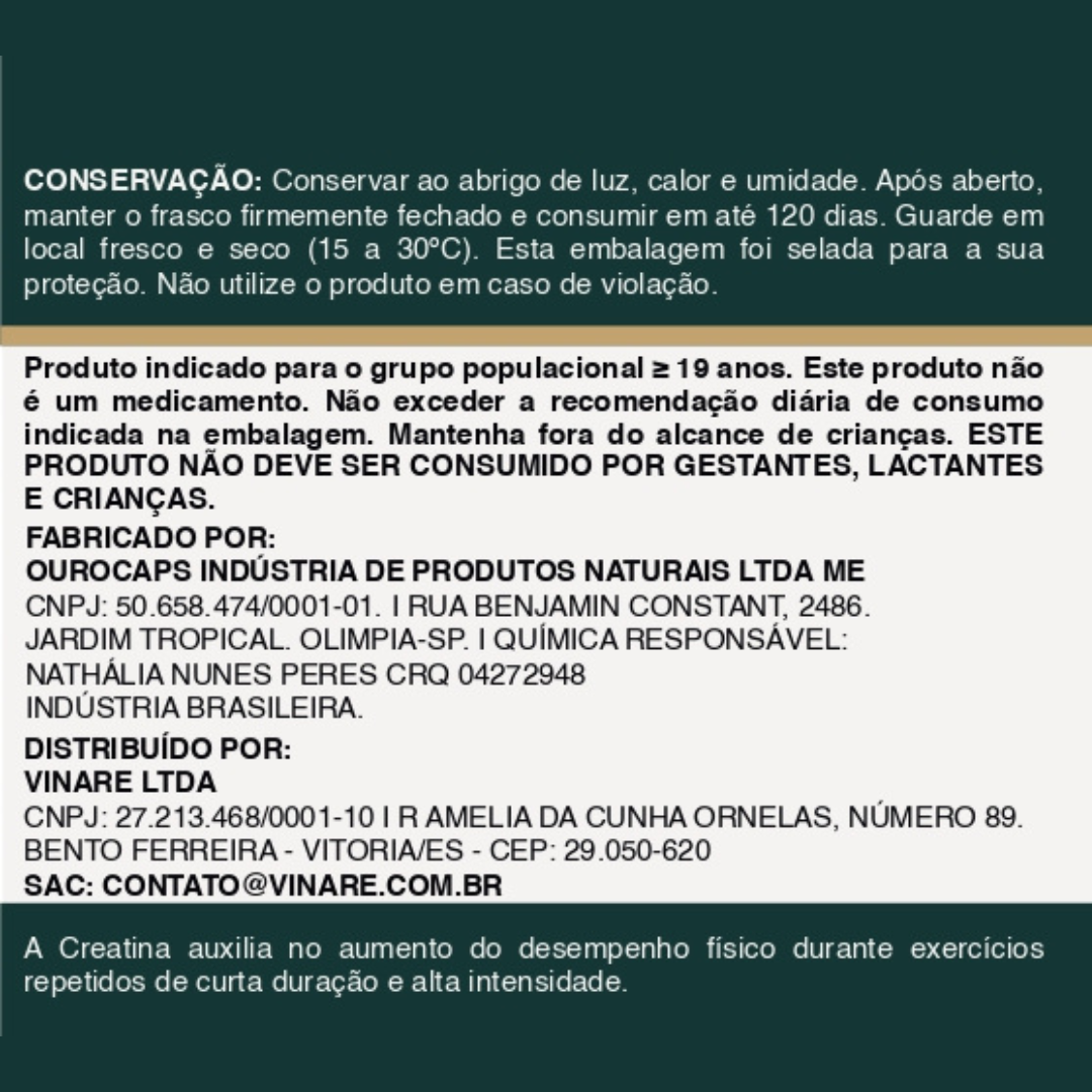 A Creatina Vinare® é um suplemento alimentar de creatina monohidratada 100% pura, desenvolvido para consumidores que priorizam qualidade comprovada, autenticidade da substância e total transparência técnica.